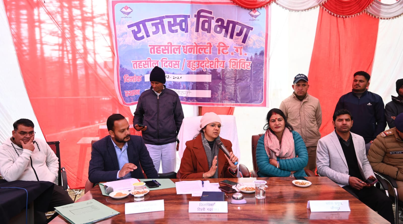 टिहरी गढ़वाल:- आज मंगलवार को जनपद टिहरी गढ़वाल के तहसील धनोल्टी में ‘तहसील दिवस’ का आयोजन जिलाधिकारी टिहरी गढ़वाल नितिका खण्डेलवाल की अध्यक्षता में किया गया। तहसील दिवस के दौरान स्थानीय नागरिकों एवं जनप्रतिनिधियों द्वारा क्षेत्र से जुड़ी विभिन्न समस्याओं एवं विकास संबंधी प्रस्ताव प्रस्तुत किए गए।