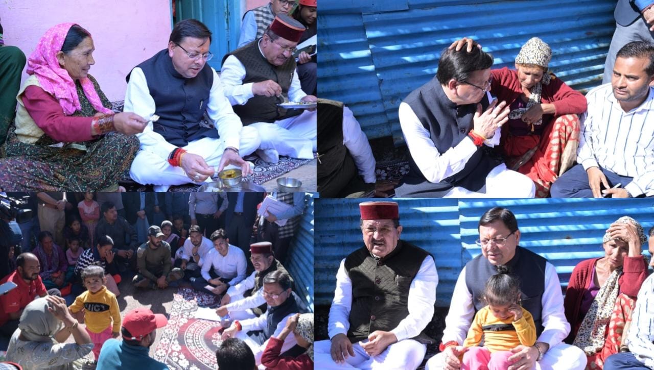 लोकपर्व इगास पर रुद्रप्रयाग के आपदा प्रभावित परिवारों के बीच पहुँचे मुख्यमंत्री पुष्कर सिंह धामी।