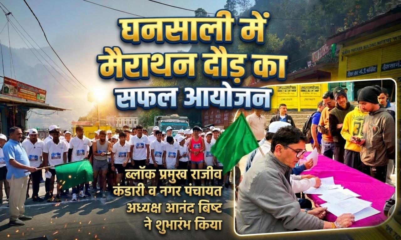 टिहरी लेक फेस्टिवल “हिमालय O2” के अंतर्गत भिलंगना ब्लॉक में खेल एवं फिटनेस को बढ़ावा देने के उद्देश्य से घनसाली से पिलखी तक 5 किलोमीटर मैराथन का आयोजन किया गया। रविवार को कार्यक्रम का शुभारंभ भिलंगना ब्लॉक प्रमुख राजीव कंडारी व घनसाली नगर पंचायत अध्यक्ष आनंद बिष्ट ने हरी झंडी दिखाकर मैराथन दौड़ को रवाना किया, मैराथन में युवाओं, महिलाओं के साथ-साथ विभिन्न आयु वर्ग के लोगों ने उत्साह के साथ भाग लिया।